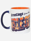 Inspired in part by vintage greeting cards, this mug features the Mountain climb and a lone TT rider set within a stylised, graphic landscape.